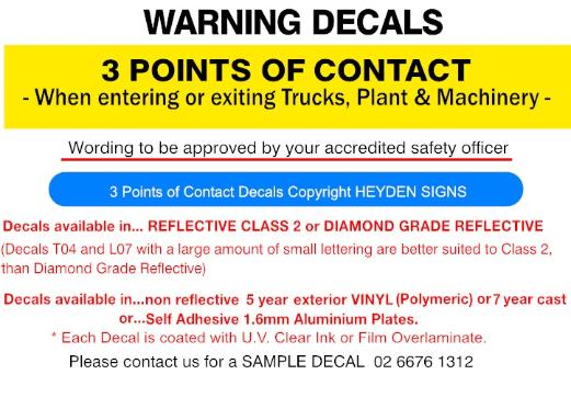 3 POINTS OF CONTACT DECALS for R/H and L/H Doors